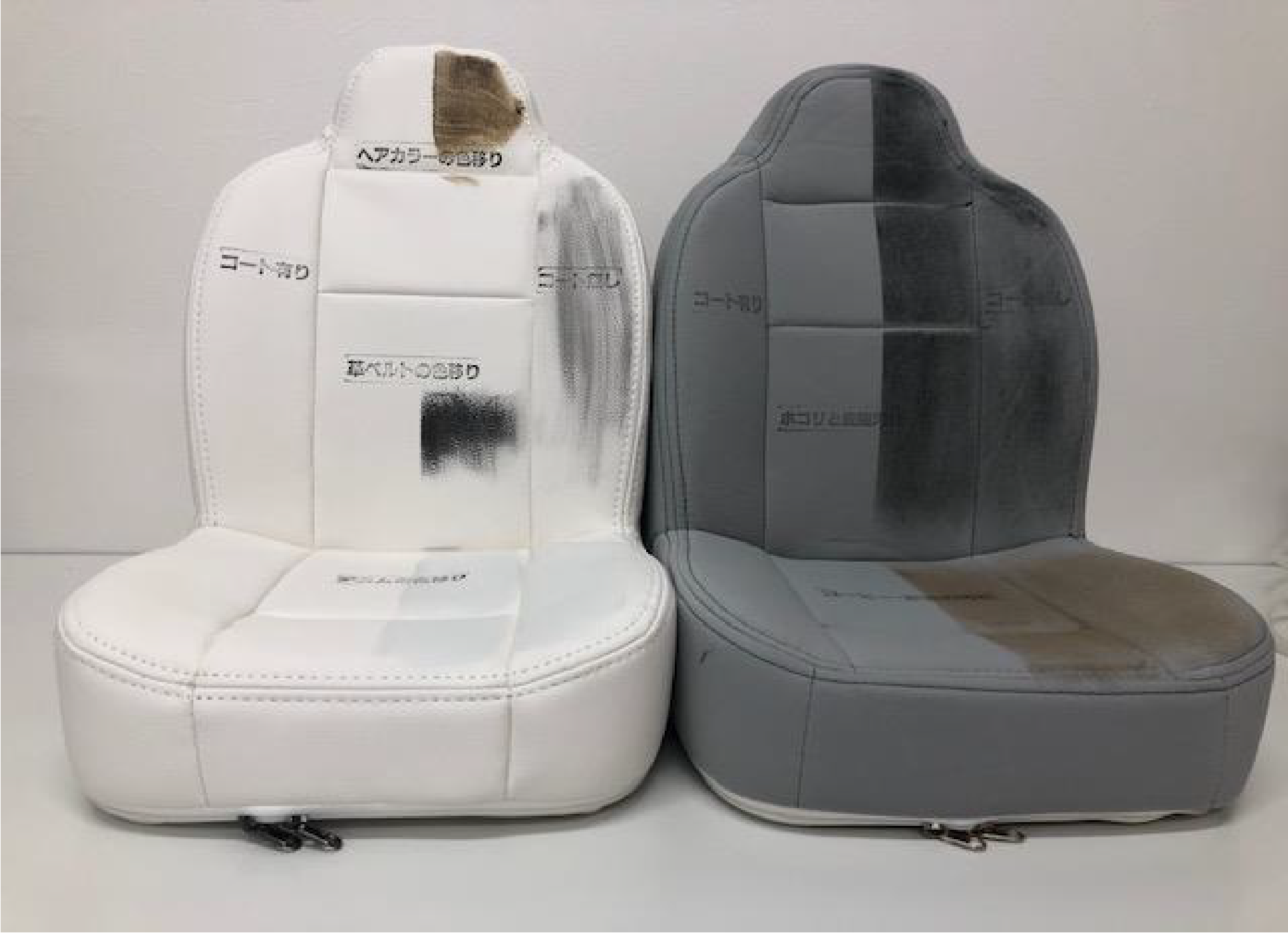 GLIONルームクリアコート用の販促ミニチュアシート。 店頭に置いて頂き、お客様にコーティング施工有と無しでの汚れの付着具合を見て頂くツール。